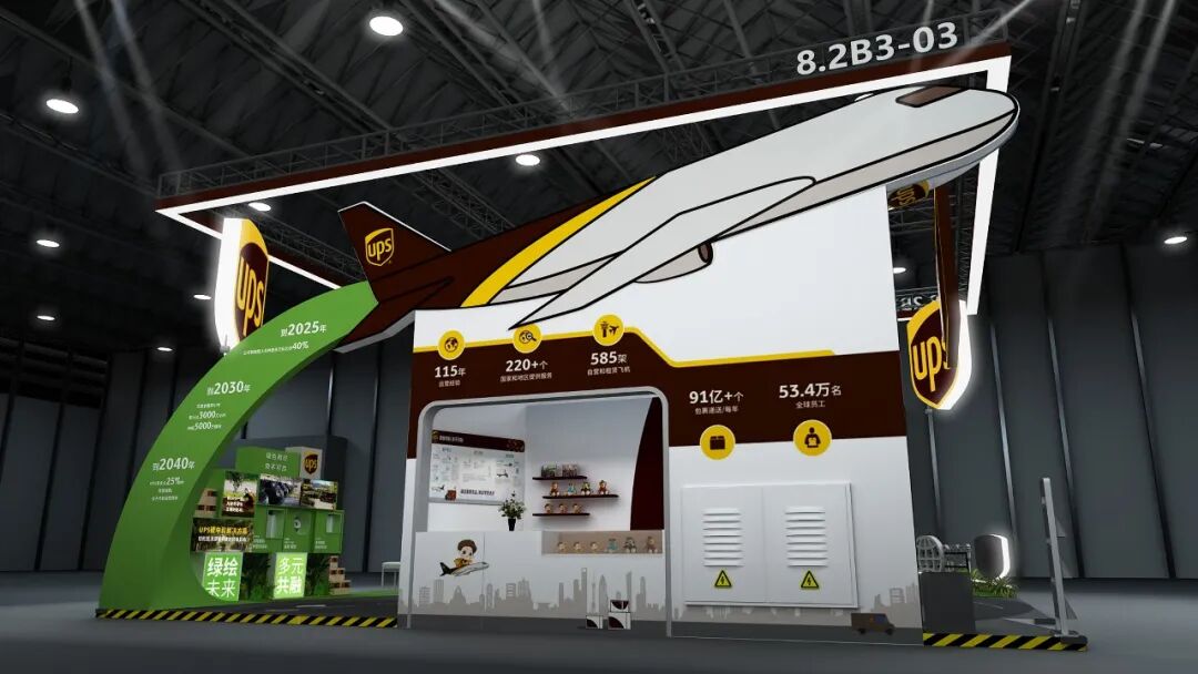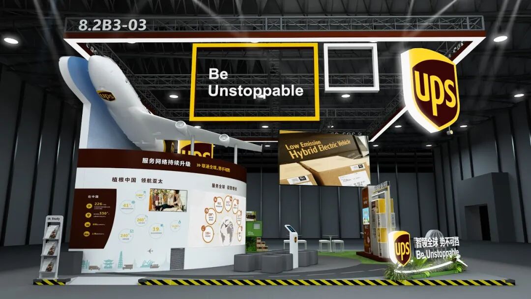 UPS作为进博会五代元老,在今年的展台设计上结合UPS“Be Unstoppable”的品牌主张,将不可阻挡的概念进行视觉化呈现:以UPS自有货机的硬实力作为展台最大亮点,巧思立体化玻璃钢飞机与平面化矢量飞机的不同维度进行呈现。围绕UPS企业业务,划分全球物流、智慧物流、绿色物流几大区域。并全部以编程多媒体方式进行呈现。结合展台打卡机制、艺术家表演、盲盒礼品,引爆现场、媒介端并吸引多家媒体自发前来报道。(展台服务商:德致(上海)展览服务有限公司)