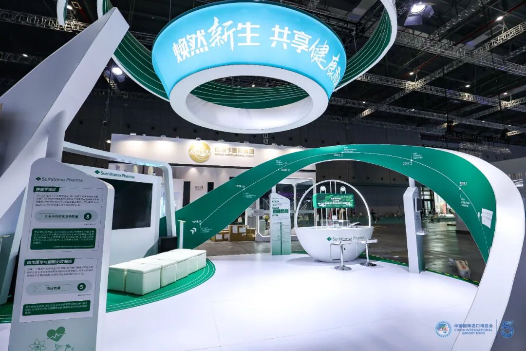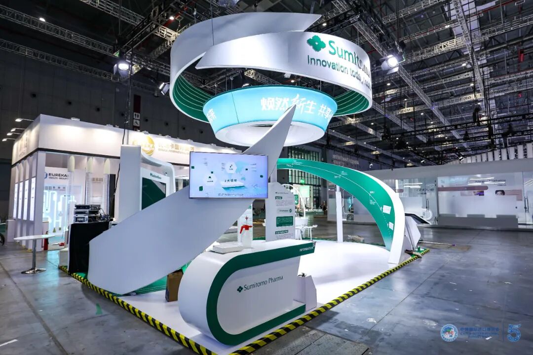 本届进博会,住友制药展台设计启用树叶包裹生命的设计理念,运用向上及汇聚的设计动向,传递住友制药对新生的向往及对生命的守护,也诠释了住友制药在此次进博会中“焕然新生,共享健康未来”的主题。