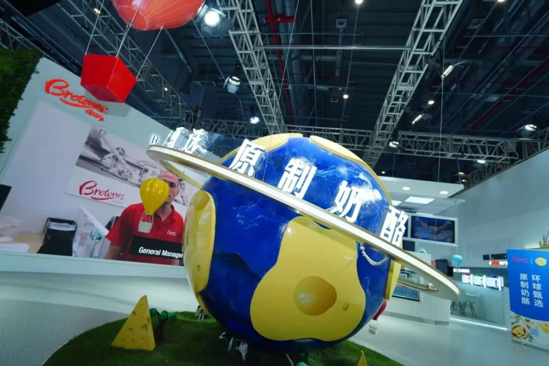 本届进博会,妙可蓝多借助参股的全球甄选优质乳品业务平台Brownes首次亮相进博会舞台,来到2.2馆B4-04展位,巨大地球造型的模型格外引入注意,地球上方的热气球造型,诠释了“环球甄选”的品牌主张,奶酪的环球之旅也由此开始,从法国、西班牙、英国、荷兰、瑞士、意大利、澳大利亚等知名奶酪产区,妙可蓝多通过这个国际平台,秉承精品原制、产地严选、醇正风味三大标准,将各具特色的奶酪产品引入中国。