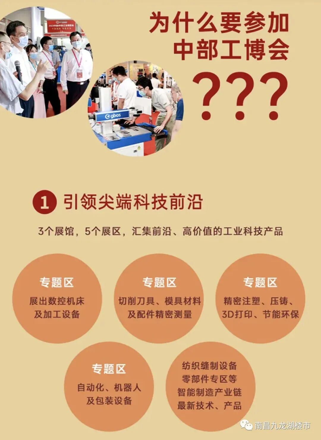 中国中部工业博览会(简称:中部工博会)、南昌市人民政府、江西省工业和信息化厅、江西省商务厅主办,南昌市商务局、南昌市工业和信息化局、江西文演集团、广东讯展会议展览有限公司、广东亚联展览股份有限公司承办。是中部领先的工业制造创新盛会,致力于探索和分享工业制造、数字化与工业融合的趋势,是江西省连接世界的创新平台。