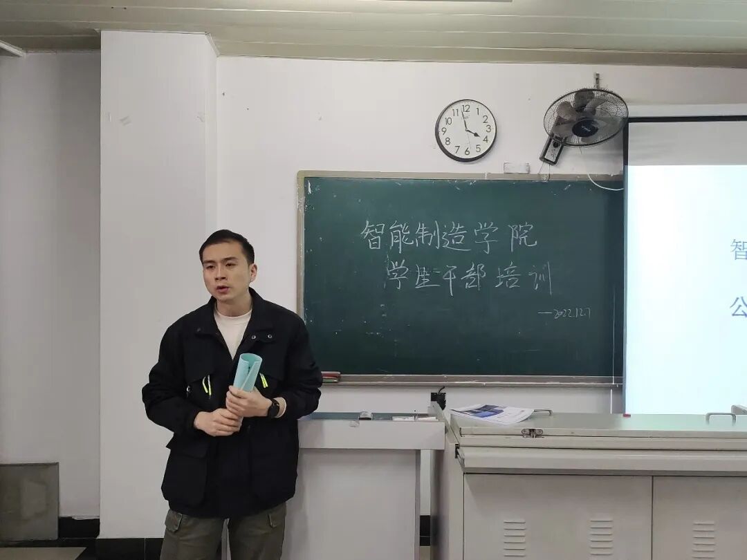 2022年12月7日,智能制造学院在7号教学楼7326开展了第三次学生干部培训班。本期授课的老师为智能制造学院辅导员杨航老师,同时参加本次培训的有2022级学生会全体成员、各班级班委。
