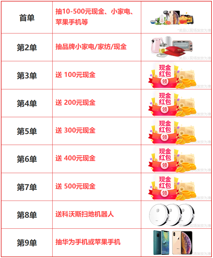 1、展会抽奖:展会订单【第2单】起现金/实物须在展会两天现场抽取,请于4月9日(周六)10:00-4月10日(周日)19:30前,前往现场【订单礼中心】靠近婚宴婚庆区。若现场未抽取可在展会结束2天后,登录婚芭莎APP参与线上抽奖。