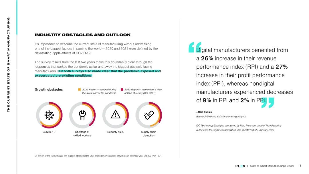 《报告》由 Plex Systems 与 Hanover Research 合作完成,为全球制造商提供有关趋势、挑战和未来计划的重要见解。