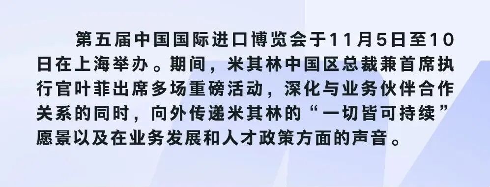 值得一提的是,自2018年第一届进博会起,米其林与国家能源、中煤集团、江铜集团已连续五年签署了合作协约。