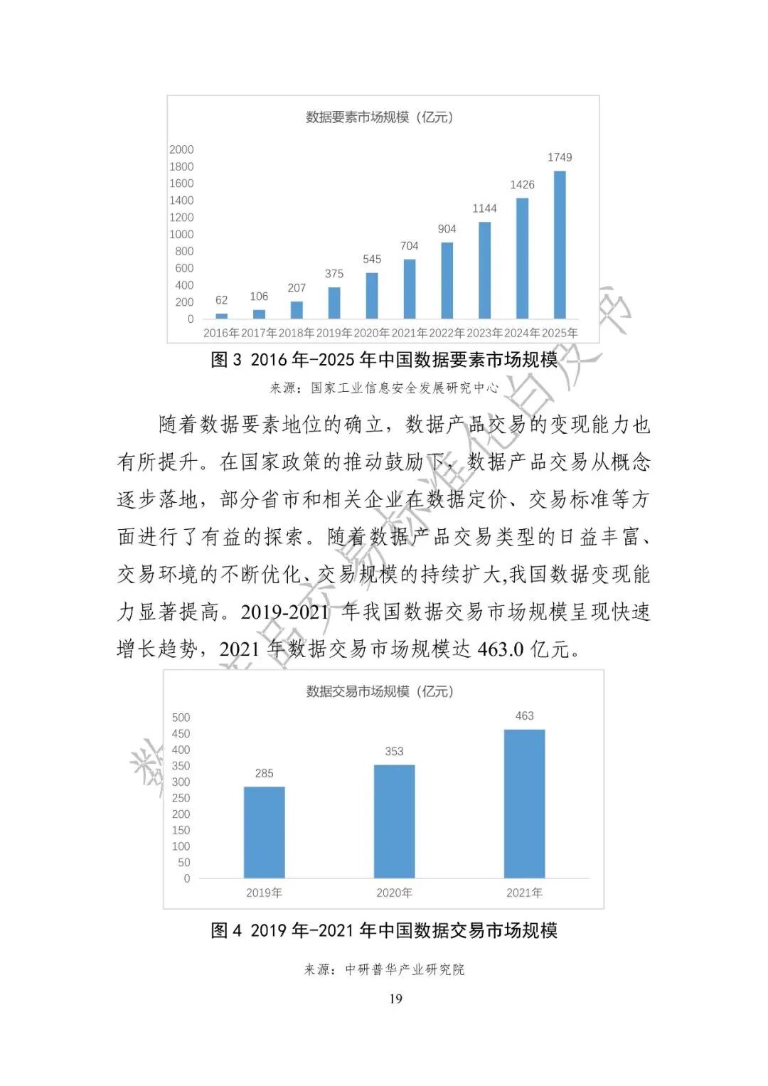 随着数据产品交易类型的日益丰富、交易环境的不断优化、交易规模的持续扩大,我国数据变现能力显著提高。2019-2021年我国数据交易市场规模呈现快速增长趋势,2021年数据交易市场规模达463.0亿元。