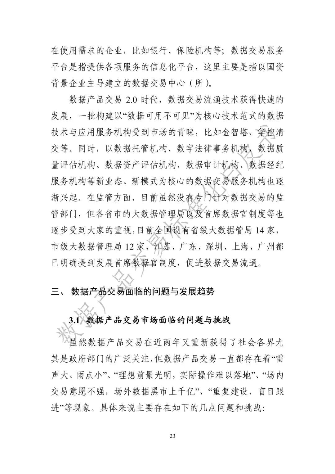第一种是政府主导建立的大数据交易所和交易平台,以贵阳大数据交易所、上海数据交易中心、江苏大数据交易中心为典型代表,该模式下,以“国有控股、政府指导、企业参与、市场运营”为原则,交易平台一般采用会员制,制定一系列涉及数据交易和会员管理的规则,组织数据交易并提供数据储存、分析等相关服务。