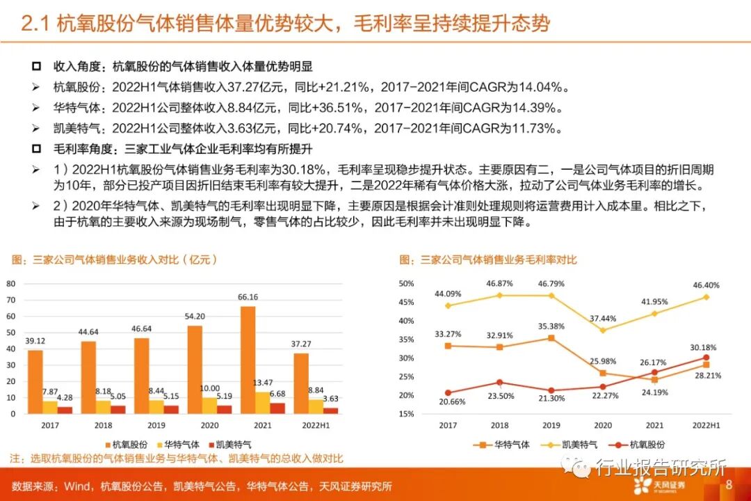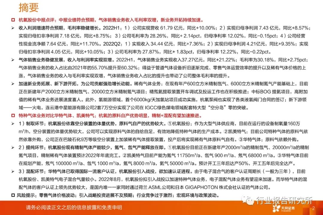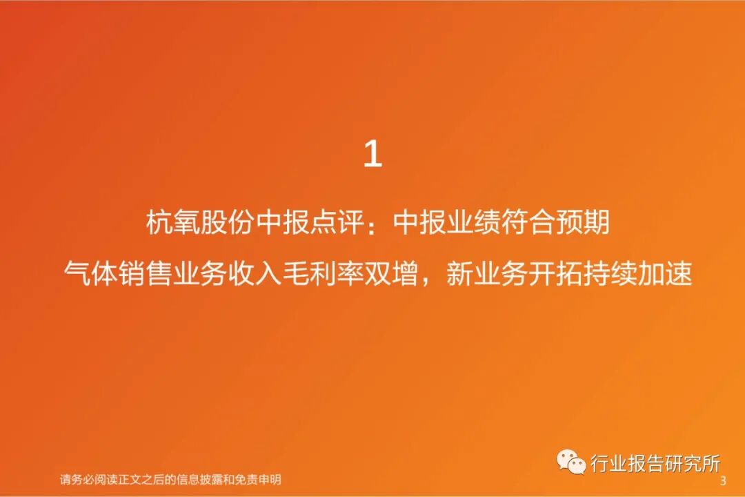 杭氧股份中报点评:中报业绩符合预期,气体销售业务收入毛利率双增,新业务开拓持续加速。