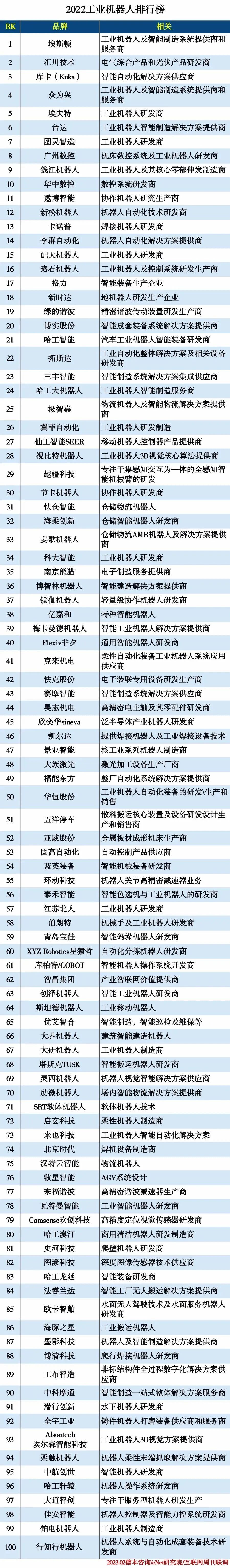 近年来,全世界机器人技术发展如火如荼,我国机器人行业发展也是方兴未艾、增长迅猛,2022年我国工业机器人领域top100企业都有哪些?