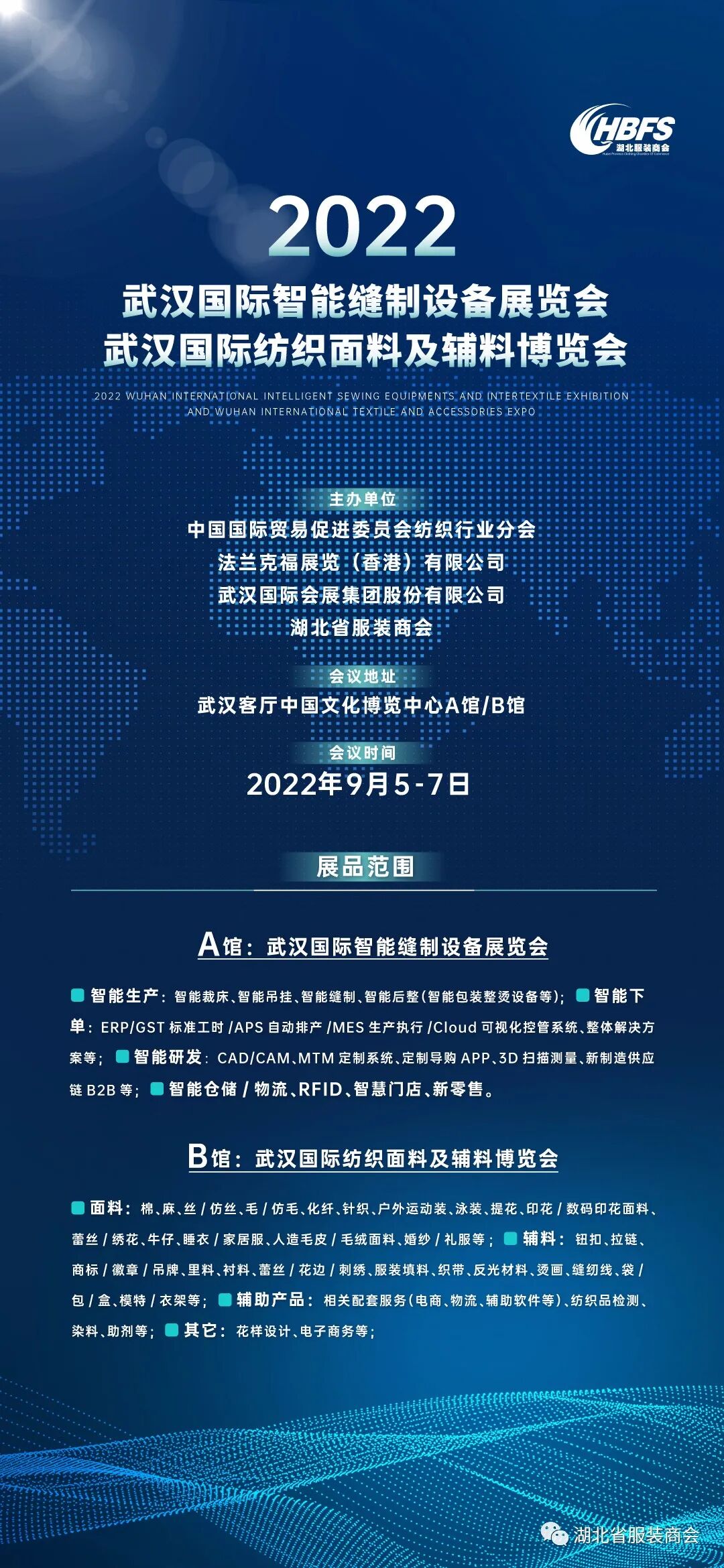 武汉国际智能缝制设备展览会是湖北省内唯一的、专业缝制设备展览会。展品包含了缝前、缝中、缝后各类智能设备以及CAD/CAM设计系统等,完整地展现了缝制服装的整个链条。智能单机、智能缝制单元、智慧缝制解决方案等全新产品与科技成果将充分展现纺织服装产业由自动化向智能化的升级转变。