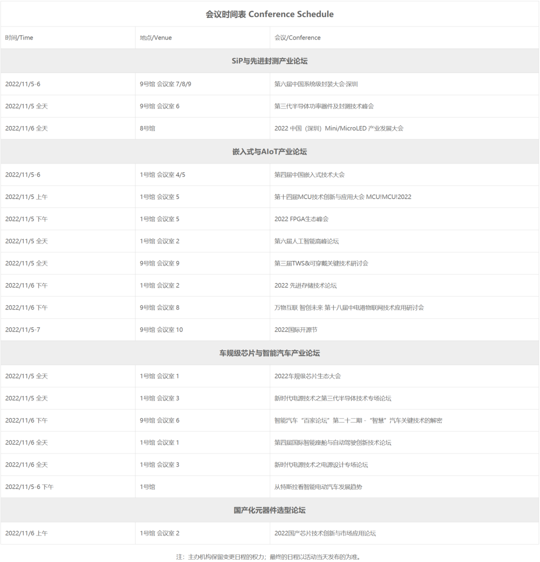 5G新技术与应用、车规级芯片与元件、嵌入式与AloT、SiP与先进封测。