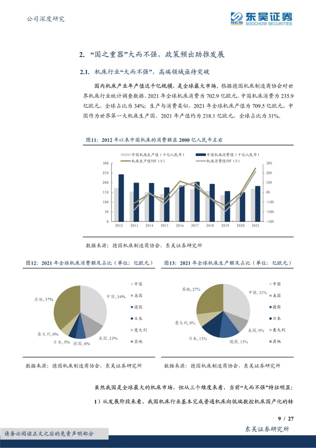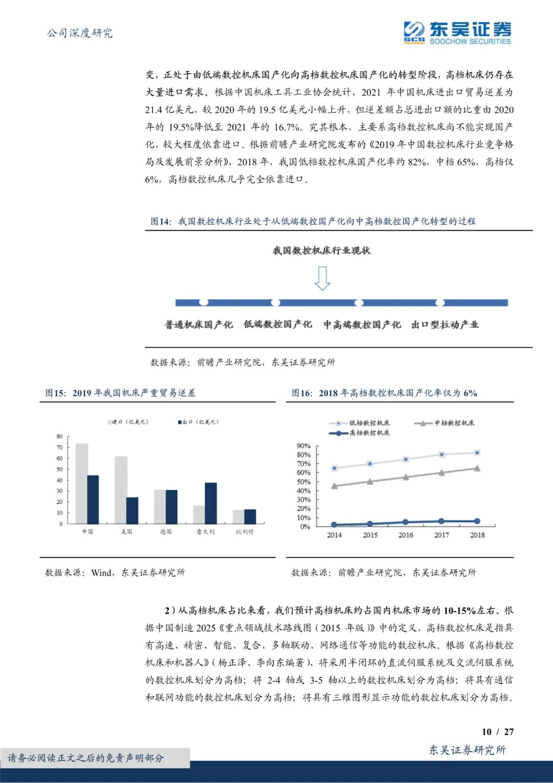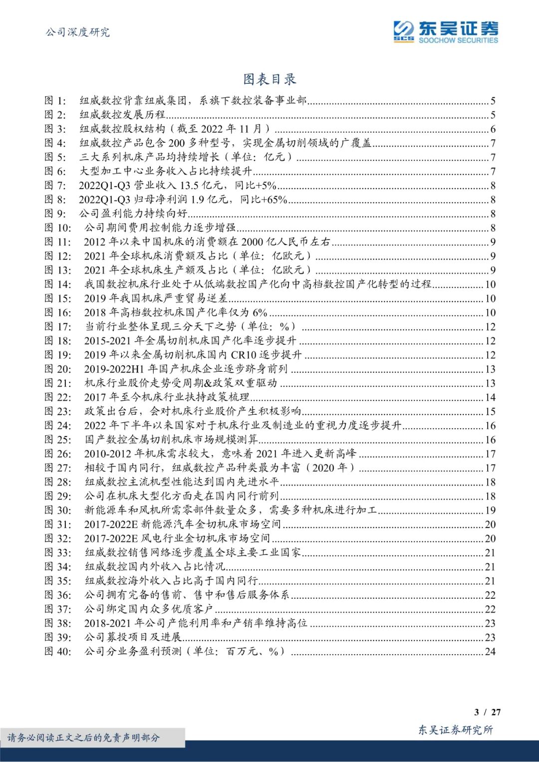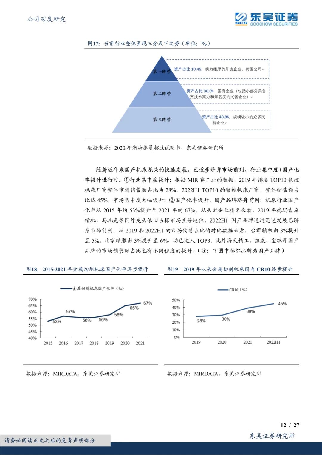 纽威数控成立于 2007 年,脱胎于纽威集团机床设计研究院,主要从事中高档数控机床的研发和生产。背靠集团深厚资源,公司实现快速发展,2017-2021 年营收和归母净利润 CAGR 分别达 28%和 68%,销售净利率从 2017 年的 3.3%提升至 2022Q1-Q3 的 14.1%,规模效应明显。公司现有大型加工中心、立式和卧式数控机床等 200 多种型号,并广泛应用于新能源汽车、风电等行业,成为国内产品线最为齐全的数控机床龙头之一。近年新能源和航空航天等领域对大型机床需求增加,公司高毛利的大型加工中心收入占比逐步提升。