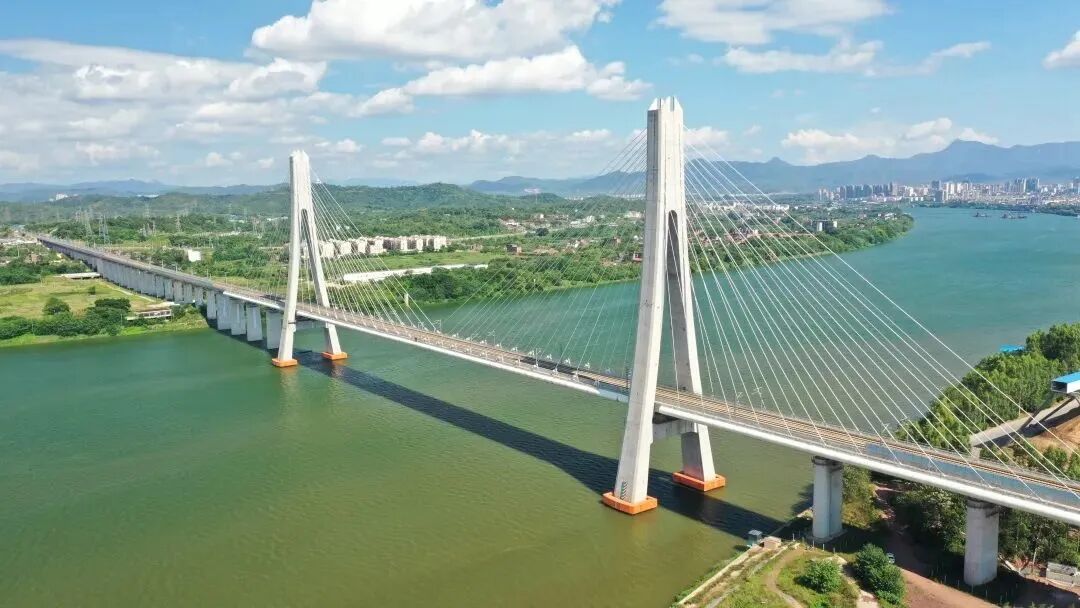 我国首座时速350公里大跨度高速铁路斜拉桥