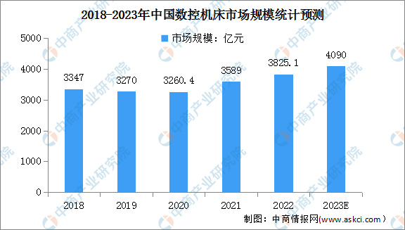 我国是数控机床的主要生产国家,产业规模占比之和超78%。近年来,我国数控机床产业规模持续扩大,2021年我国产业规模3589亿元,同比增长10.4%。2022年约为3825.1亿元,预计2023年我国数控机床产业规模将达4090.0亿元。