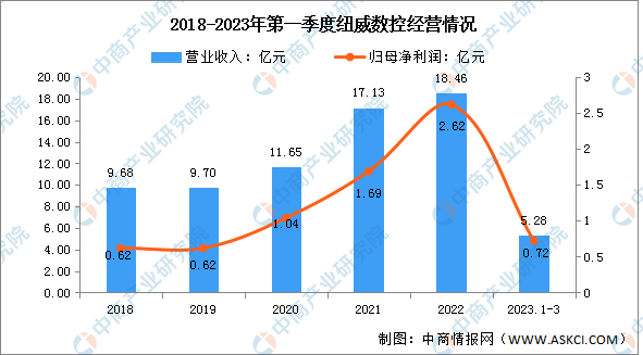 2023年第一季度实现营业收入11.31亿元,同比下降12.46%;实现归母净利润1.22亿元,同比下降27.38%。2022年数控机床占营收的97.69%。