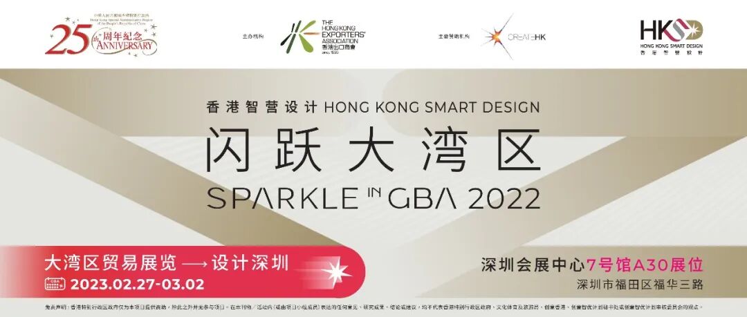 由香港出口商会主办、香港特别行政区政府“创意香港”赞助的“香港智营设计 • 闪跃大湾区2022”致力协助香港原创品牌开拓粤港澳大湾区(大湾区)市场。项目现率同十八个香港原创设计品牌,及其近五十件香港原创设计产品进驻首届“设计深圳”实体展览,把优质产品直接介绍给深圳的朋友与来自世界各地的采购商,让大家感受香港原创设计的魅力,开启创意交流