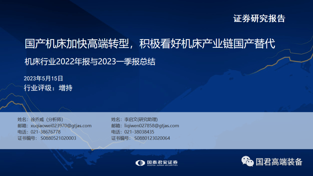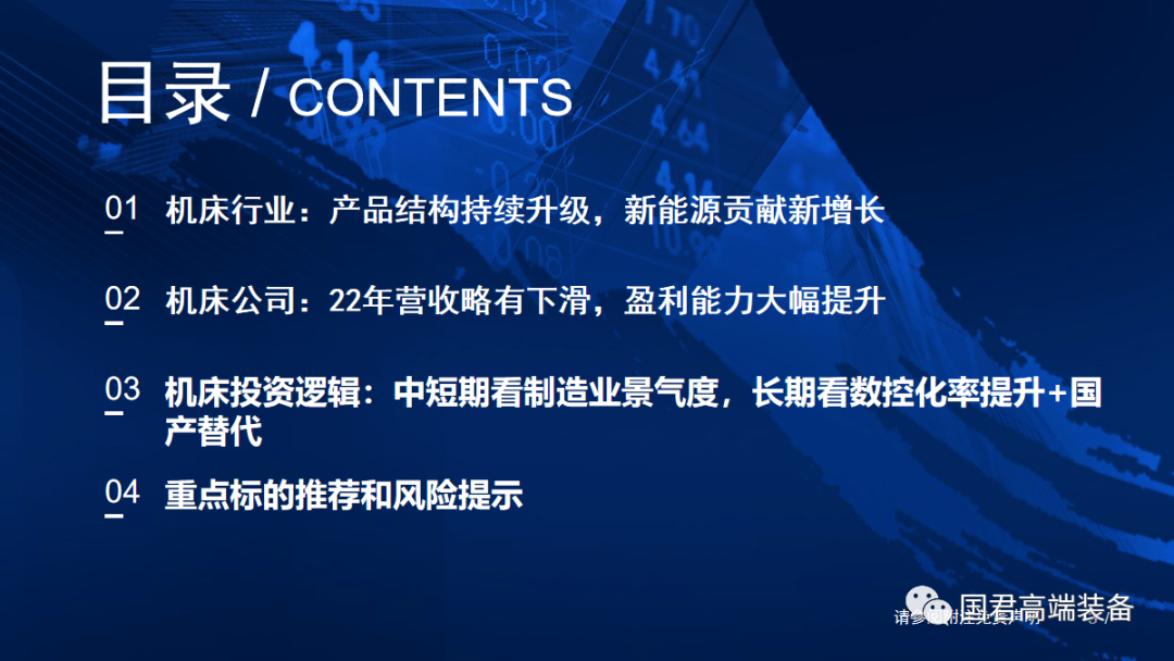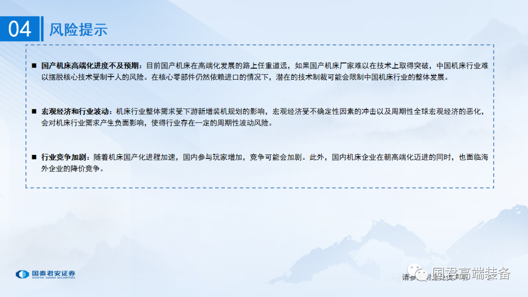 ▶风险提示:国产机床高端化进度不及预期、宏观经济和行业波动、行业竞争加剧。