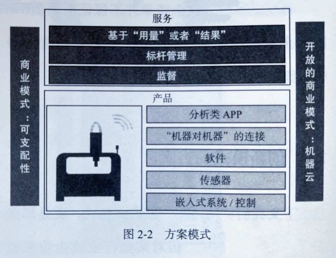 许多生产型企业都在慢慢转型:从单一的“产品”供应商发展成为“方案”供应商,服务在企业业务中的比重越来越大。方案模式如图 2-2 所示。