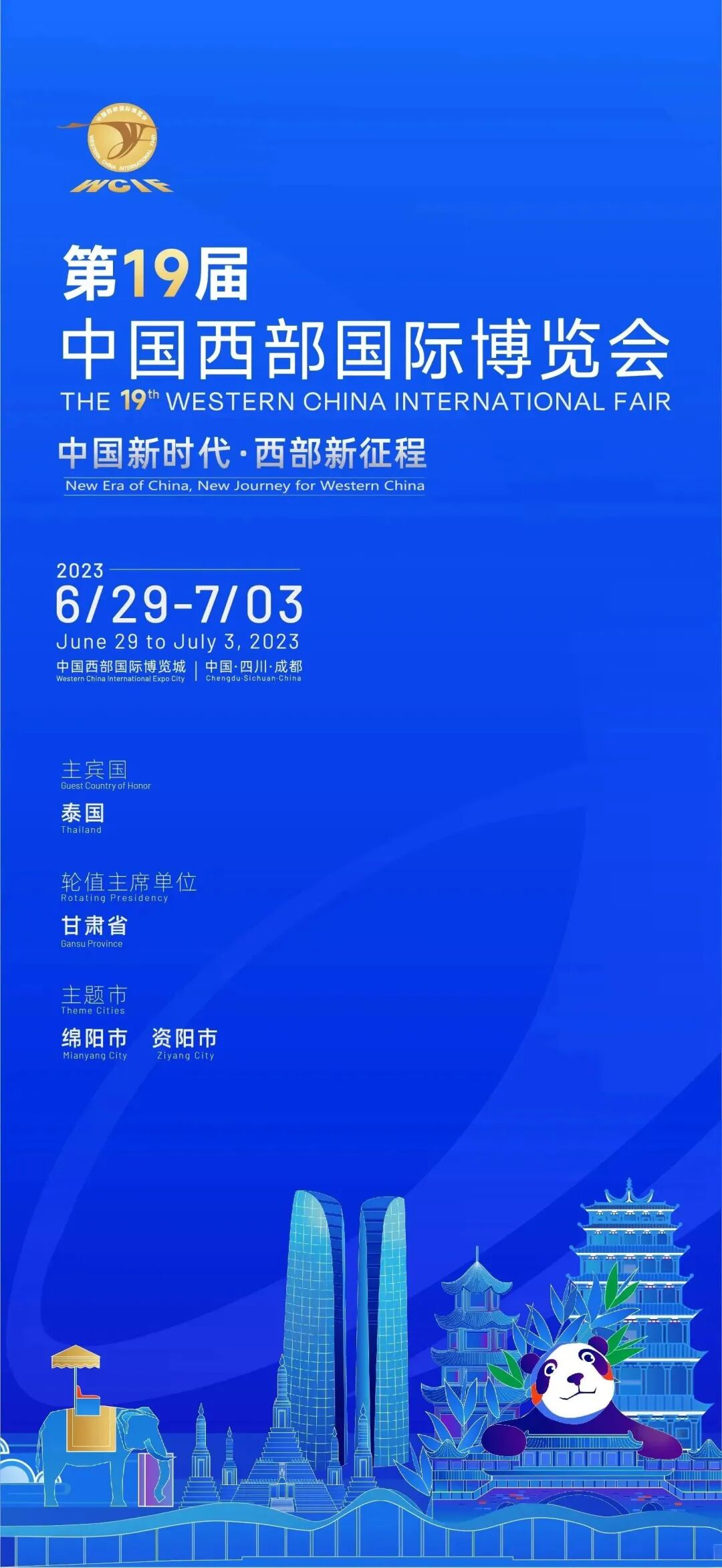 以“中国新时代·西部新征程”为主题的第十九届中国西部国际博览会(以下简称“西博会”)定于6月29日至7月3日在四川成都的中国西部国际博览城举办。