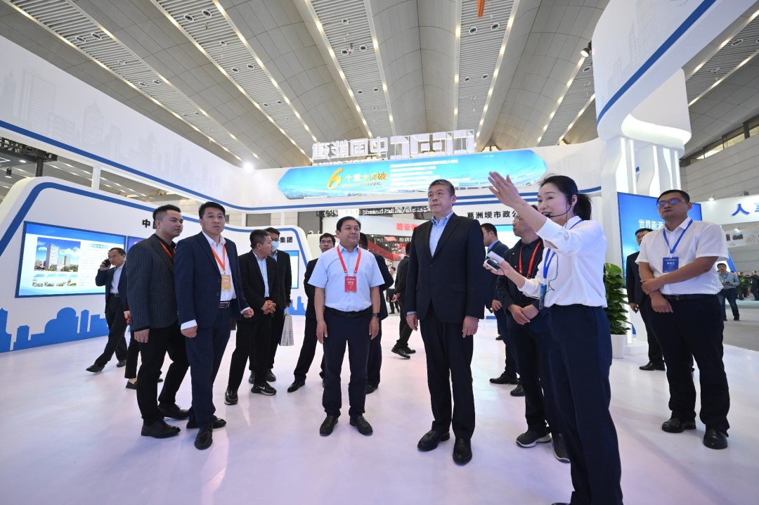 博览会期间,黄强一行来到公司设置的智慧交通展厅,察看了“三新”能建、交能融合等内容,听取了王少宏关于中国能建、葛洲坝集团和公司在综合交通工程建设、智慧交通技术应用、交能融合发展等方面领域的探索、运用情况及亮点工作的介绍,对中国能建发起的“三新”联盟,以及在压缩空气储能、交能融合等方面取得的成绩给予高度赞赏。