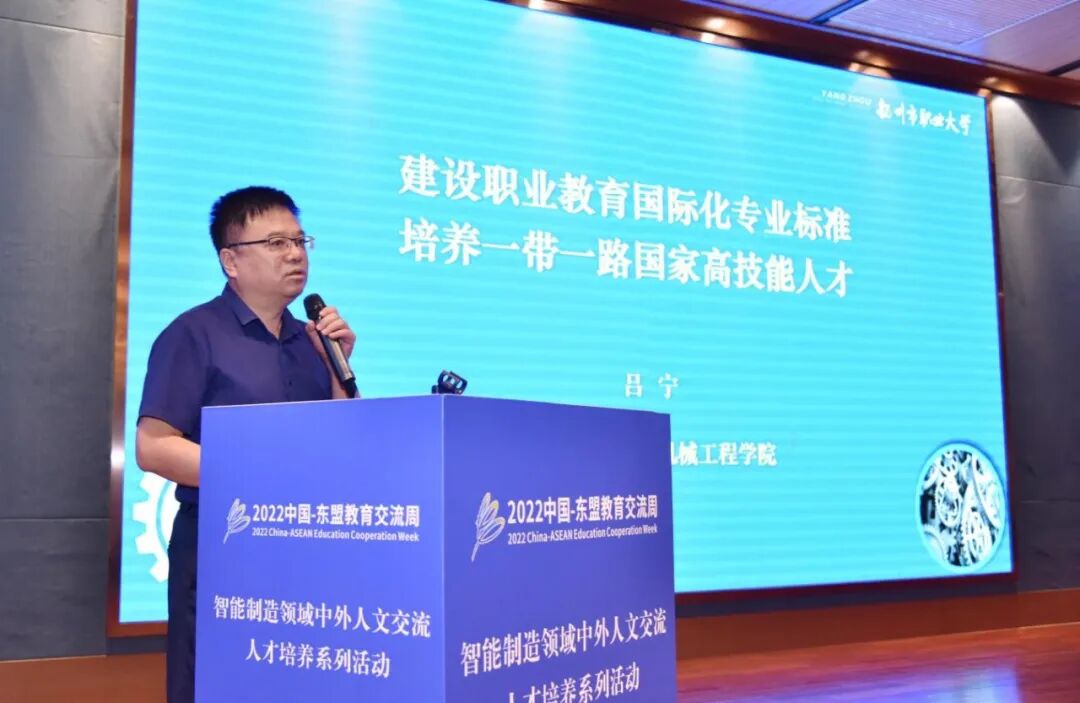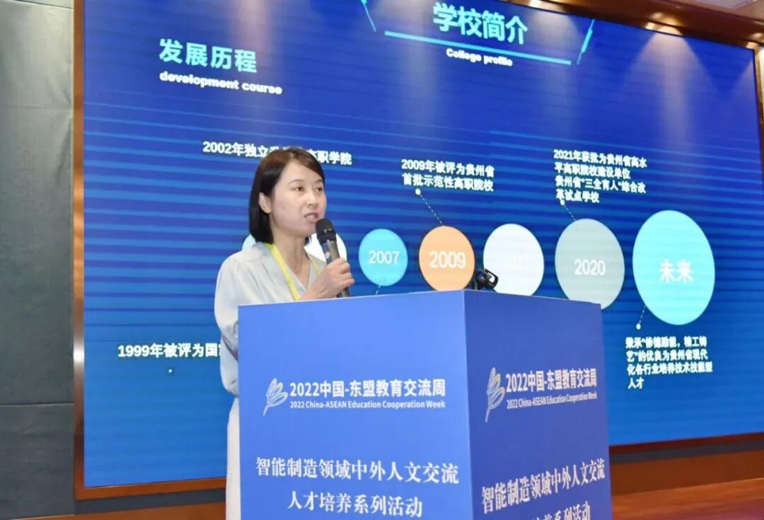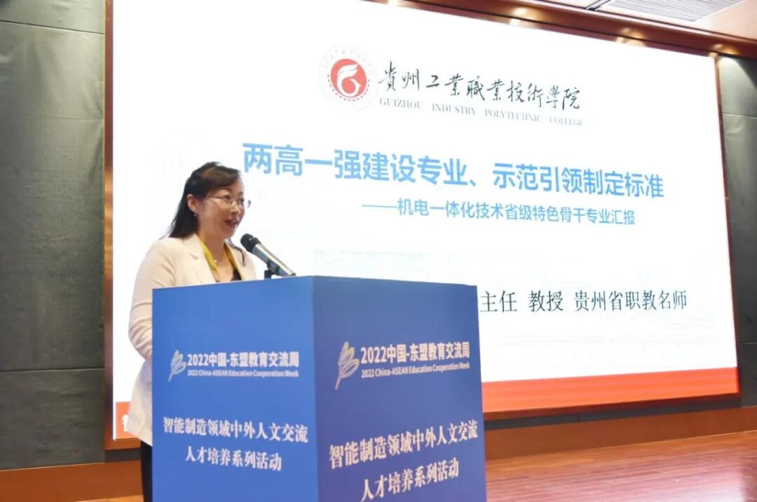 8月23日上午,2022中国-东盟教育交流周“智能制造领域中外人文交流人才培养基地项目国际化专业教学标准制定研讨会”在中国-东盟教育交流周永久会址黄果树厅举行。