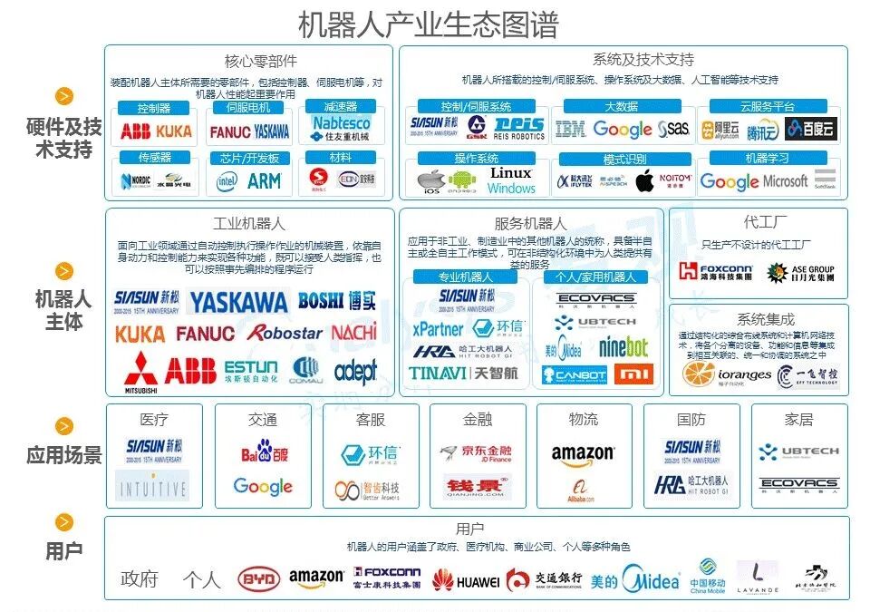 欧洲和日本是工业机器人主要供应商,ABB、库卡(KUKA)、发那科(FANUC)、安川电机(YASKAWA)四家占据着工业机器人主要的市场份额。四大家族工业机器人占全球市场份额约50%。