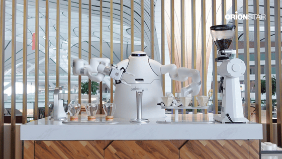 新零售服务机器人智咖大师是由猎户星空自主研发而成,由两条六轴协作式机械臂组成,通过了超3000小时的AI学习,30000小时的双臂调教,和百万级数据的视觉训练,实现复位误差可精确到0.1mm,能精准还原顶尖咖啡大师的手法,口感可与实体咖啡店的大师一较高下。