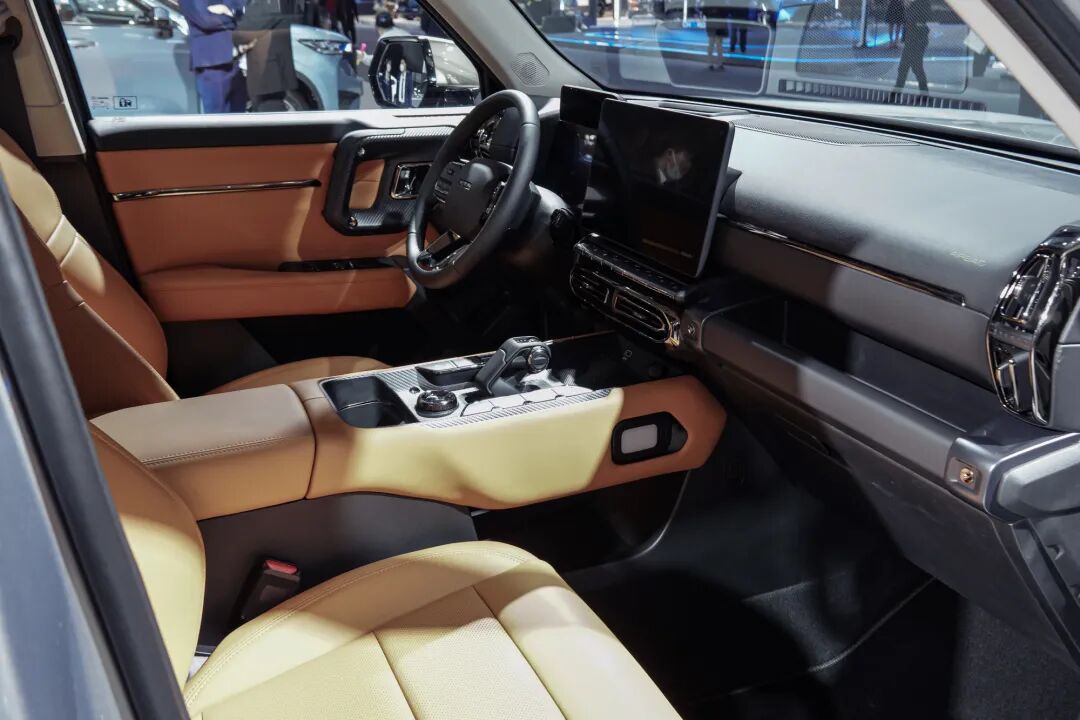 路虎卫士130的车内采用「2+3+3」座椅布局,而车厢内还有第二个全景天窗,使得全车拥有光线充足的视觉效果,而四区恒温空调的加入,也让第三排乘客拥有更好的乘坐体验。