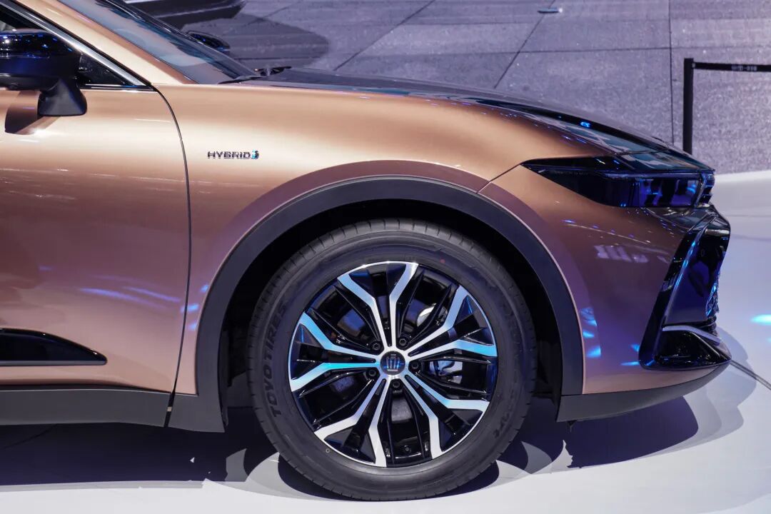 外观方面,皇冠跨界车型的整体形象与此前的15代皇冠大有不同,前脸是融合bZ SDN还有bZ SUV的扁平式造型。此外,新车还首次导入的21寸大尺寸轮圈,也让皇冠的车身比例相对紧凑。