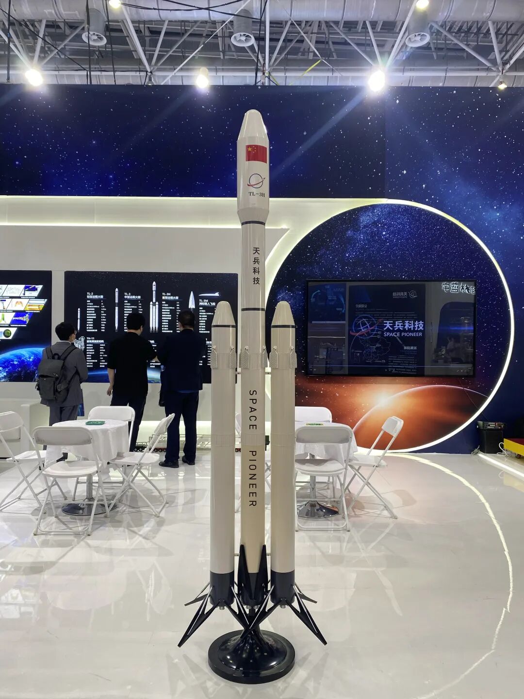 在现场天兵科技模型展区,据工作人员介绍,天龙二号液体火箭(以下简称“TL-2”)采用的高压补燃液体火箭发动机、水泥场坪简易发射、民用槽车自动加注等多项新技术,均为国内商业航天首创。相对于同规模的火箭,“TL-2”液体运载火箭在提升运力,增强可靠性的同时,大大降低了研制成本,满足用户低成本、快响应、规模化的小卫星及星座发射需求。