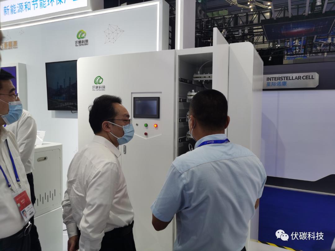 在为期5天的展会上,伏碳科技展出了二氧化碳电解转化装备、电解测试仪在内的多项展品,其中“二氧化碳电解转化装备”获得了“优秀产品奖”。展览期间,安徽省商务厅促进局副局长徐英、天津市副市长朱鹏对公司产品及负碳技术解决方案理念表示了肯定,并进一步了解了产品的技术原理和应用场景,鼓励项目到本地落地。