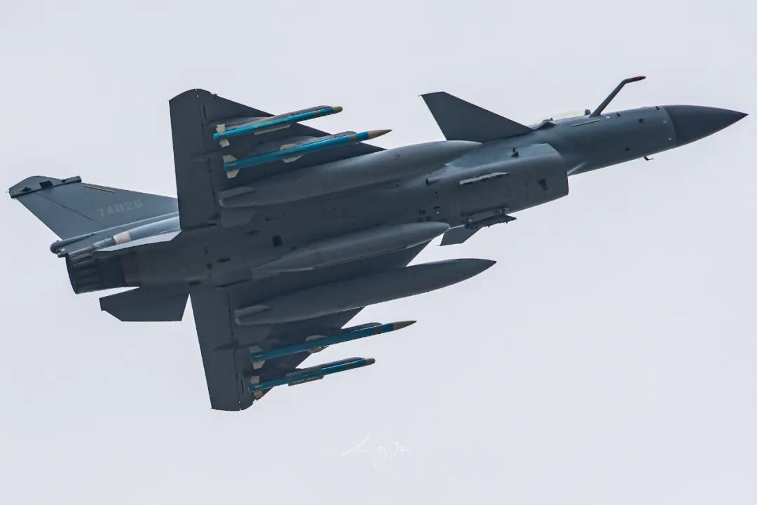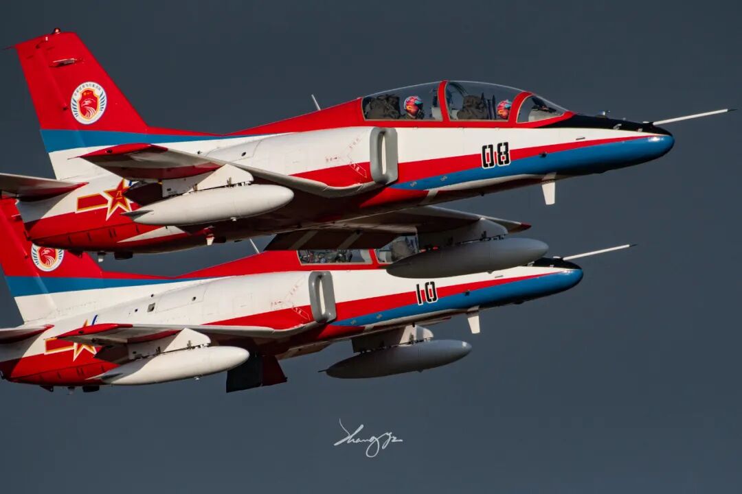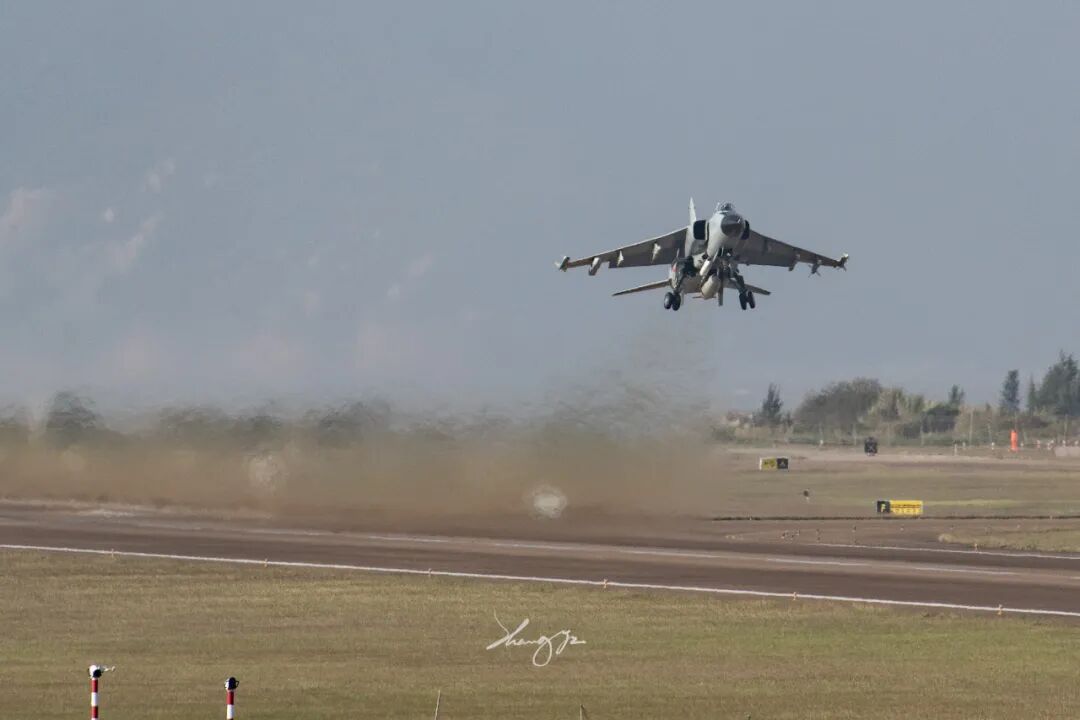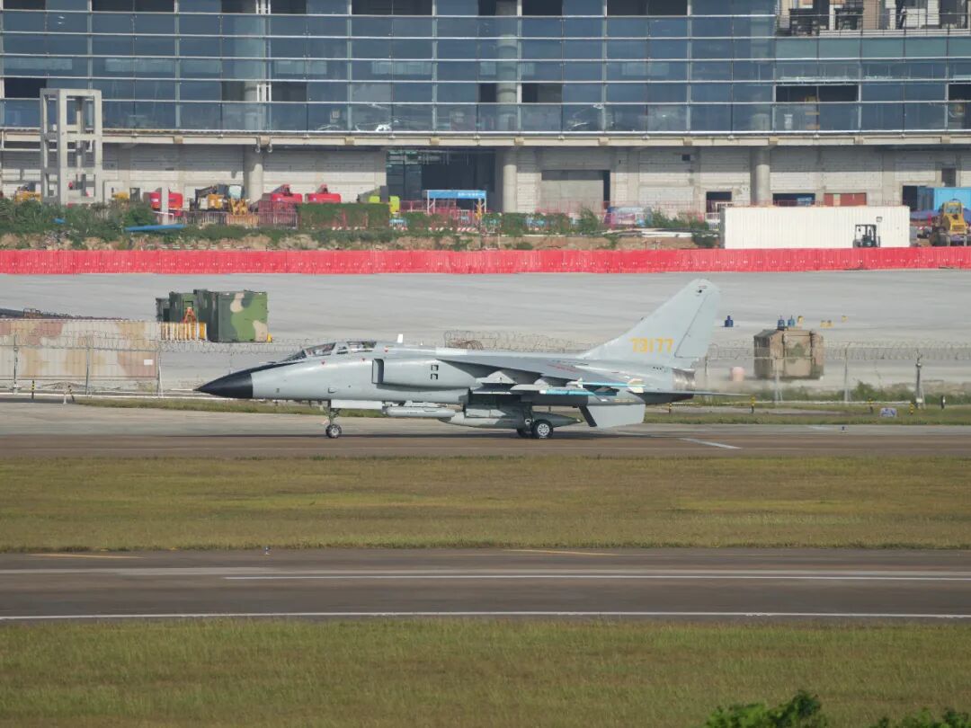 8:47,飞豹起飞。挂载了PL5、PL8,还有一个电子干扰吊舱。机身进气口下挂载了瞄准吊舱和数据链吊舱。飞豹是航展最老的飞机,连阅兵都拍不上了,拍一次少一次。9:23,歼10C滑行准备起飞,以后八一队也要换装歼10C了9:33,歼10C起飞,挂载两发PL15和两发PL1011:26,八一飞行表演队开始起飞离场。还发生了点小插曲,其中3号机在滑行时一直在漏油,没有起飞,而是重新回到了停机坪。和3号机同一个编队的另一架也一同返回。