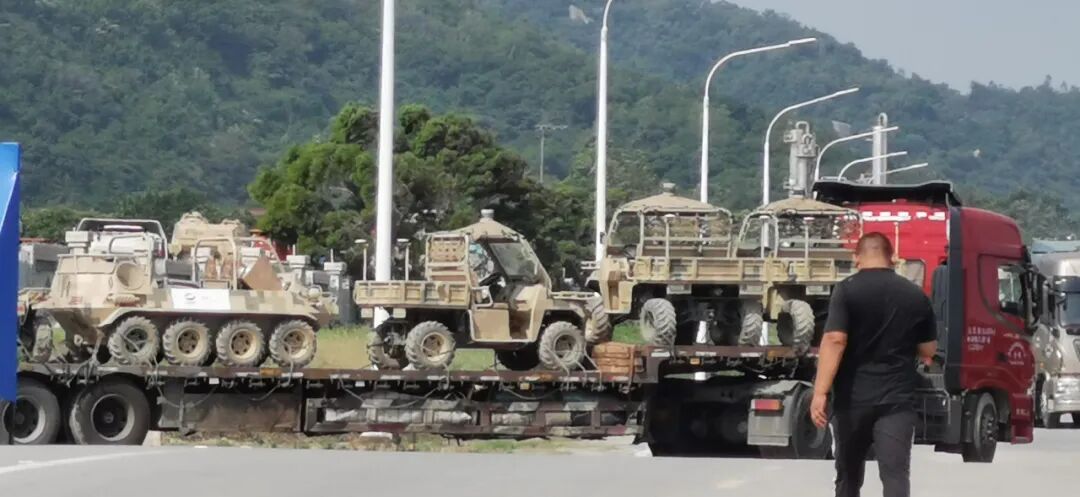 大家拍了一早上,收获满满。下午就转战展品装车区,其实就在炮楼回大路的路边,看到参展的装甲车辆一个一个的开上平板车拉走。这场面感觉就是一场小型的阅兵式,各种如同变形金刚的怪兽从自己面前经过,即便不是正式表演,也能让人肾上腺激素飙升。