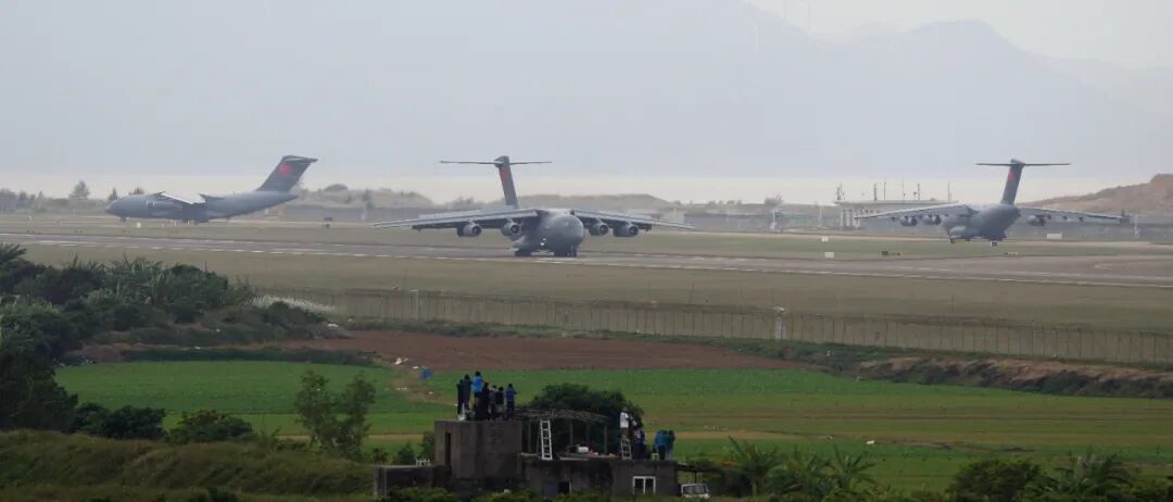 12:35,刚清空的停机坪,瞬间又塞满了运输机。大家终于见识到以前只有美俄才能看到的战略运输机繁忙运货的场面。