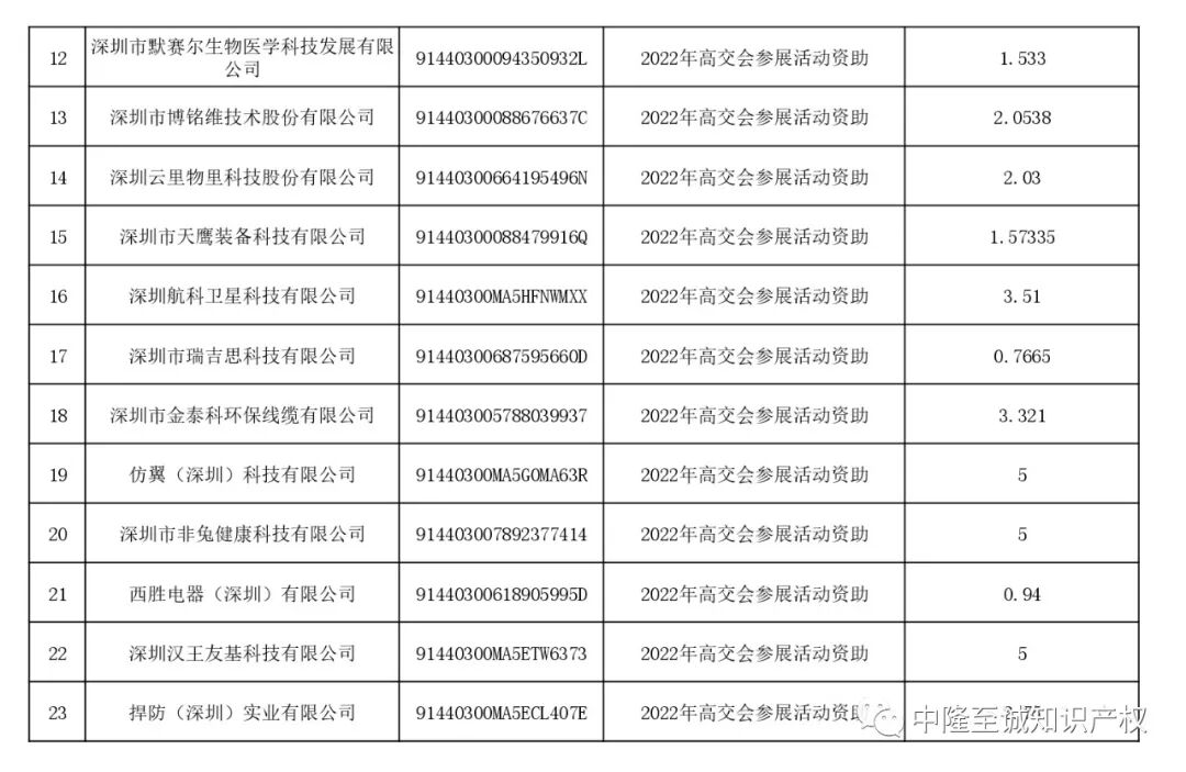 附件:2023年龙华区科技创新专项资金(2022年高交会参展活动资助项目)拟资助企业名单
