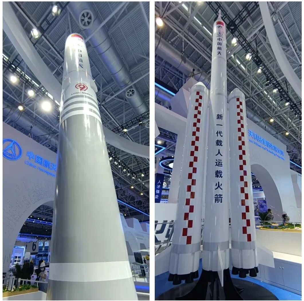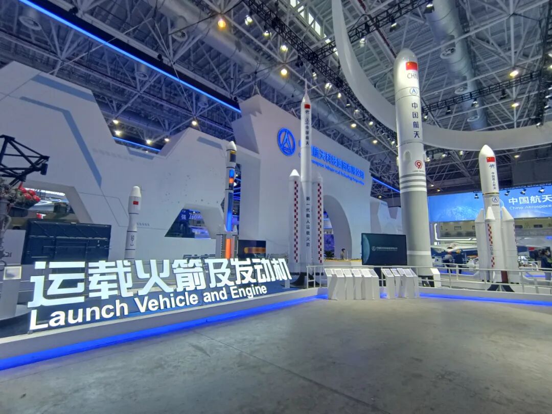 宇航展区展出了长征五号B运载火箭、新一代载人运载火箭、重型运载火箭等新一代运载火箭家族和捷龙三号火箭、商业火箭沙盘等公众期待的项目,集中展示了我国运载火箭的强大实力。