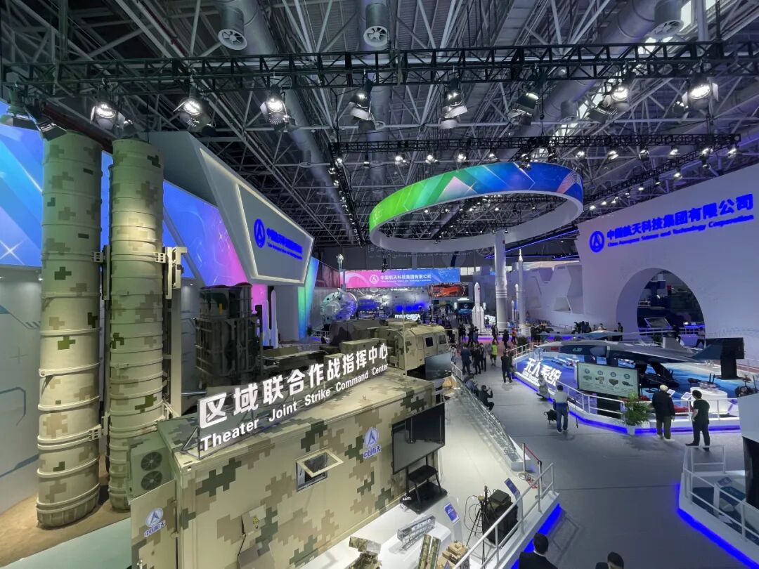 防务展区展出了地地打击武器系统、防空导弹武器系统、无人系统等一批最新型、家族化军贸产品,包括A100G、A200、A300火箭武器系统,M20、M20B导弹武器系统,HQ-16FE中远程防空导弹系统,地/舰空和空空/地导弹家族,防空反导反无作战体系和靶弹系统等重磅展品。FH-97A忠诚僚机、彩虹-7高空长航时无人机、彩虹-6大型双发通用无人机(涡扇型)、彩虹-5H中高空长航时无人机等热点无人机机型也在展区亮相,充分显示了空天一体、攻防兼备的整体优势。