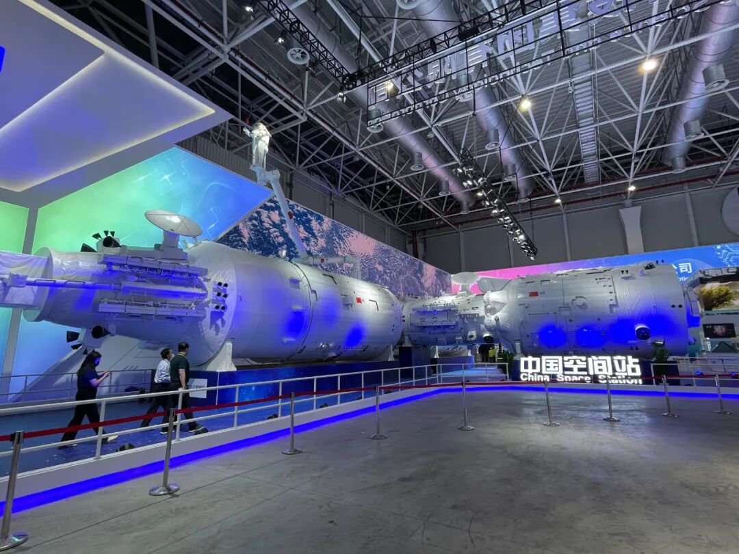 今年是我国载人航天工程立项实施30周年。在中国空间站即将全面建成之际,本届航展上的重磅展品——1:1空间站组合体展示舱精彩亮相,全景展示空间站T字基本构型,让大众在地面就可以近距离了解中国人的“太空之家”,体验中国载人航天的最新科技成果。