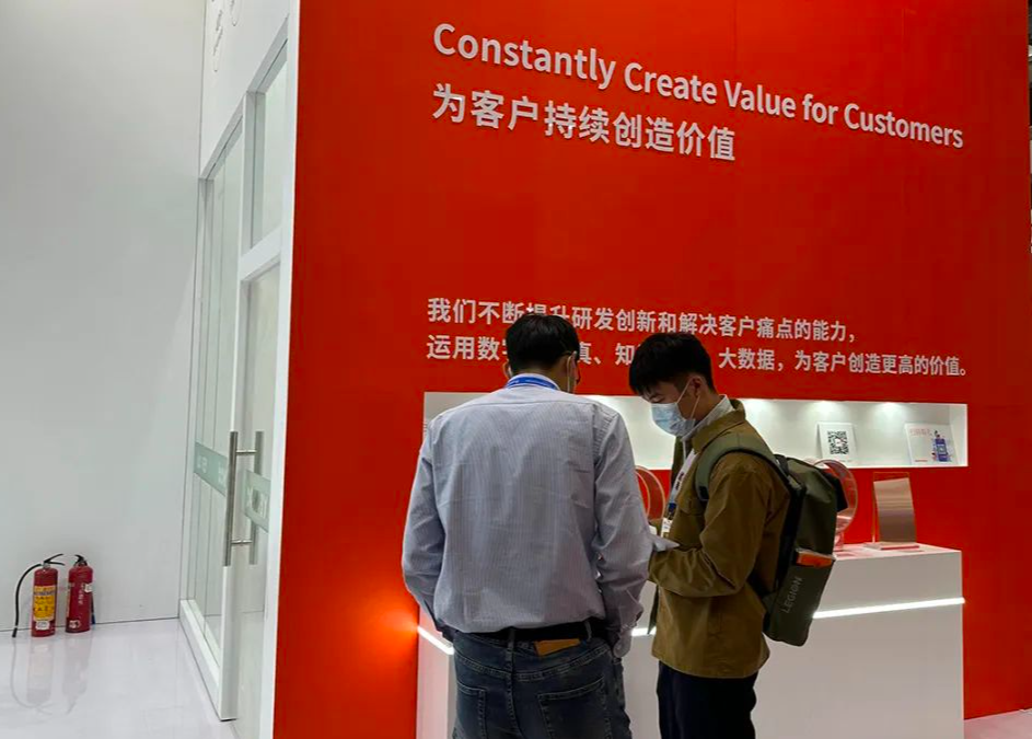 材料是工业的先导,处于产业链上游,是制造业的基础保障。此次参展,博威合金特别带来了新能源汽车与消费电子用多款高性能材料,引起访客兴趣,与工程师进行深入沟通。在博威展位,技术工程师细致地讲解公司材料与应用,方便客户切实感受材料细节。