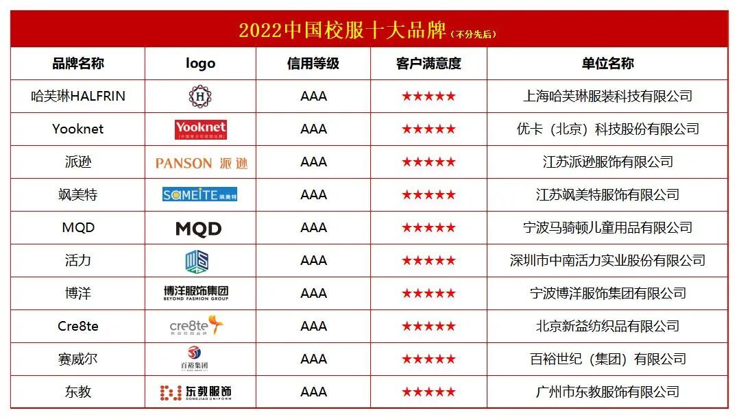 近期,招投标供应链品牌推介平台发布“2022中国校服十大品牌”榜单,这份榜单的发布不仅对于学生和学校选择校服品牌时提供了重要参考和指导,同时也对校服行业品牌化发展和壮大起到了重要推动作用。校服作为学生校园内穿着的必备服装,代表着一种特定学校、学生群体的象征,有助于学生团结、身份认同,体现了学校的文化特色,并在一定程度上能够影响和促进学生的学习生活。近年来,随着我国教育事业和社会的发展,市场对校服质量、安全和时尚方面要求不断提高,向更加个性化、绿色环保、多元化方向发展。面对机遇与挑战,众多知名校服品牌商和校服厂商紧跟市场时尚趋势,不断发掘自身潜力,以创新方案、领先技术、高质量产品和差异性、定制化的服务来满足不同学生和学校新需求,在产品设计上不断融入新的元素,打造出更加时尚、个性化的校服款式满足现代审美需求;在质量控制上,采用环保面料,推出多种不同功能的环保校服,以回应消费者对校服绿色、环保、健康高品质要求,来增强客户黏性;同时深入实施品牌化发展战略,打造品牌形象,树立行业领导者地位,提升自主品牌知名度和良好社会形象,来增强企业综合竞争力和品牌影响力,并有效推动校服行业高质量可持续发展。现阶段校服行业中,品牌化趋势日益明显。为进一步推动校服企业品牌化发展,提升我国校服自主品牌市场知名度、美誉度和影响力,展示校服品牌标杆良好形象,发挥品牌引领带动作用,招投标供应链品牌推介平台举办了“2022中国服装招标采购评价推介”活动,并联合多家权威媒体发布“2022中国校服十大品牌”榜单,此专题活动多年来得到社会各界和行业企业大力支持与关注,并给予高度评价与认可,每年度发布的权威榜单已成为校服招标采购各方和品牌招商加盟的重要验证参考依据。具体榜单如下:近日,福建省校园服饰专场活动在厦门国际会展中心举行。记者从专场活动上获悉,目前,福建省已发展形成集面料辅料、研发设计、生产加工、销售服务于一体的完整校服产业链,汇聚了全国校服产业60%以上的资源和渠道,福建省校服产业规模居全国前列。