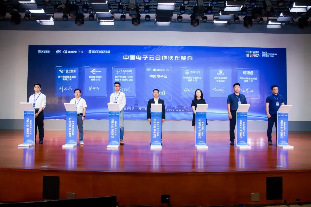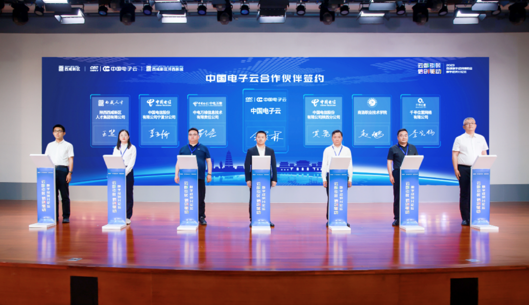 会上,沣西新城管委会与中国电子云领导共同为“中国电子云西北研发中心”揭牌;中国电子云副总裁全贤林与中国电信股份有限公司陕西分公司、中电万维信息技术有限责任公司、中国电信股份有限公司宁夏分公司、千寻位置、西咸人才集团、商洛职业技术学院、美林数据、诚域集团、第六镜科技、陕西睿联、西安皓玥、明源云合作伙伴代表签署战略合作协议。未来,中国电子云将合作伙伴一道,发挥各自优势,形成合力,共同推动数字经济高质量发展!