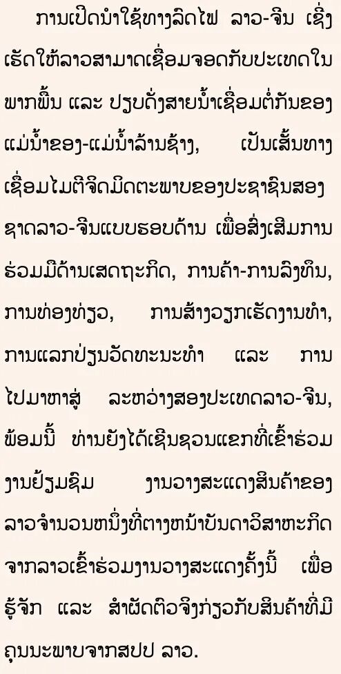 老中铁路的开通,使老挝与本地区国家连接起来,就像湄公河同澜沧江相连一样。 这条铁路全方位地连接起老中两国人民的友谊,将促进两国的经济合作、贸易投资、旅游、创造就业、文化交流和人员往来,同时,他还邀请与会的嘉宾参观参会的多家老挝企业,亲身了解并体验老挝的优质产品。
