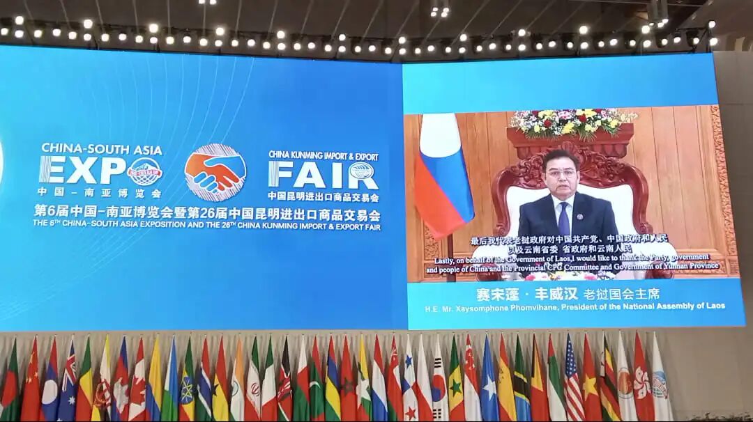2022年11月19日上午,第六届中国—南亚博览会暨第二十六届中国昆明进出口商品交易会在中国昆明举办,主题为“共享新机遇,共谋新发展”。老挝人民民主共和国荣幸地成为主宾国,并有幸邀请到老挝国会主席赛宋蓬·丰威汉的参与。