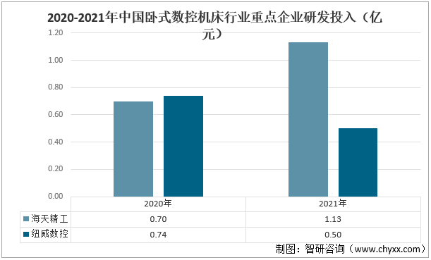 据统计,我国海天精工数控机床行业的研发投入逐年上升,致力于技术研究开发的自主创新,不断完善产品结构、丰富产品系列,满足高端数控机床市场,提升产品的性能和竞争力。纽威数控的研发投入逐年下降,2021年海天精工数控机床行业的研发投入为1.13亿元,较上年增长61.43%,纽威数控的研发投入为0.5亿元,较上年下降32.43%。
