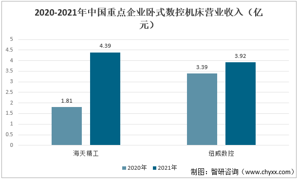 从两家企业的卧式数控机床营业收入来看,2021年海天精工卧式数控机床营业收入成功超过纽威数控,据统计,2021年海天精工的卧式数控机床营业收入为4.39亿元,较上年增长142.54%,纽威数控的卧式数控机床营业收入为3.92亿元,较上年增长15.63%。