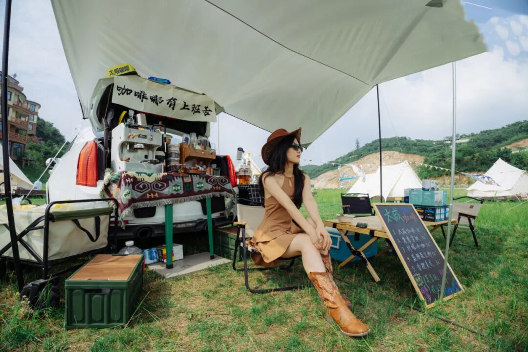 户外野奢营地氛围拿捏,音乐当然也安排到位。民谣?摇滚?流行?还是说唱?无限可能!对啦~现场还有行野行也和嗨!小瓶的联名咖啡首发,便携的可爱汽车造型“野式”风满满,不剧透自己去解锁~彩蛋看这里:参加现场打卡活动,会有帐篷天幕等户外用品赠送!