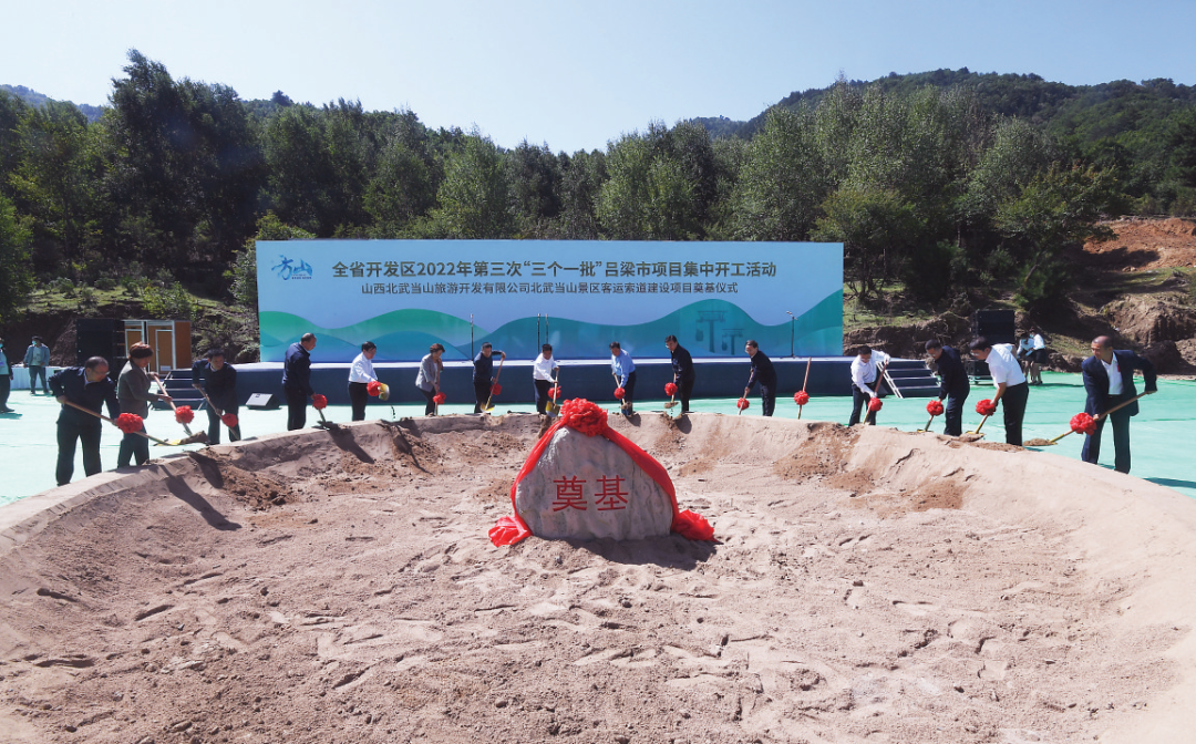 图为全省开发区2022年第三次“三个一批”活动暨太忻一体化经济区建设推进会吕梁分会场举行“开工一批”代表项目开工奠基仪式。