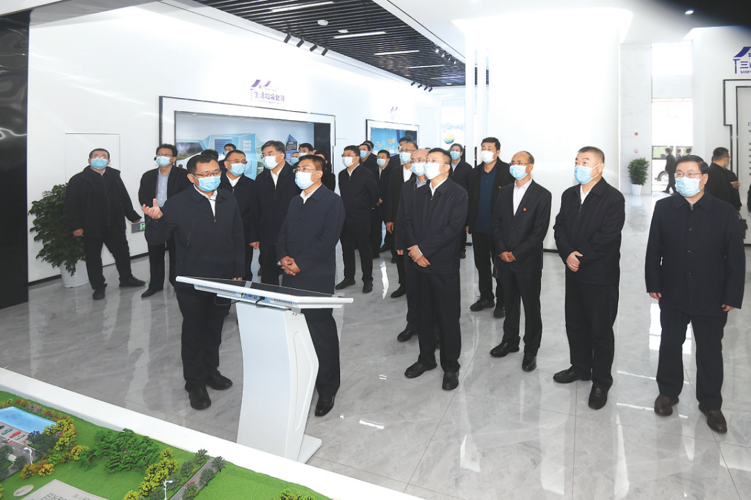 图为市委书记孙大军、市长张广勇等领导在吕梁市生活垃圾焚烧发电厂进行观摩。