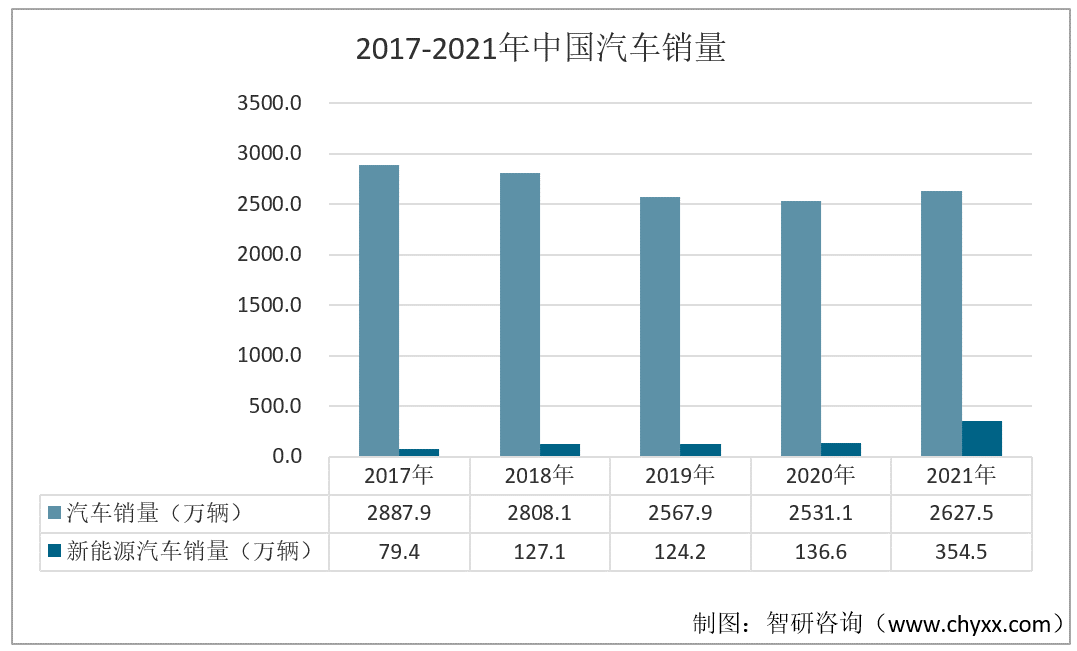 从2017年-2021年我国汽车总销量不断减少,从2017年的2887.9万辆减少到2021年的2348.9万辆。但随着我国新能源汽车行业的发展,我国新能源汽车销售量不断上升,尽管新能源汽车对零部件做出了新要求,但同时也带来了新需求,为数控机床发展带来新的应用领域。