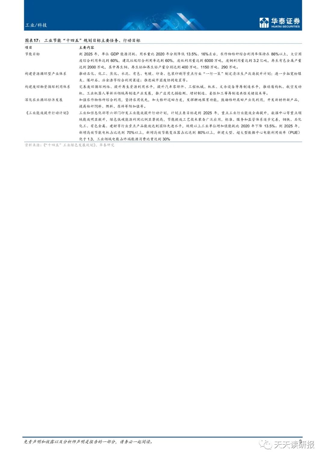 “十四五”是工业绿色低碳转型的关键五年。制造业用能需求刚性增长,能耗控制压力仍然较大,到 2025 年单位 GDP 能耗目标比 2020 年降低13.5%。《工业能效提升行动计划》提出:聚焦重点用能行业、重点用能领域、重点用能设备
