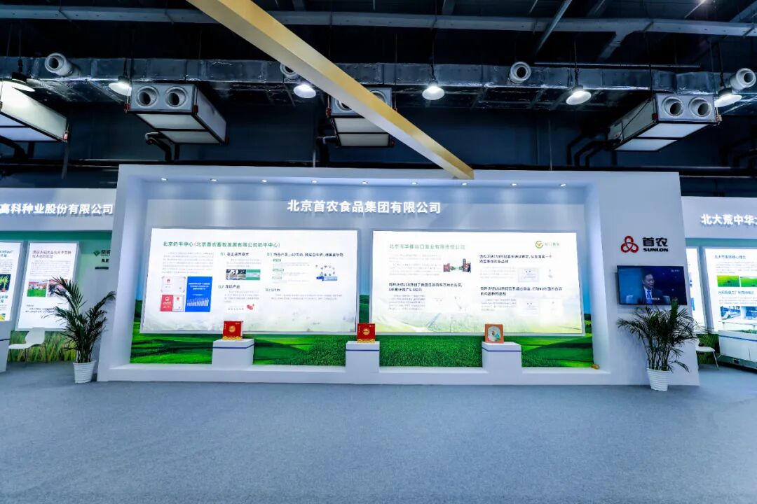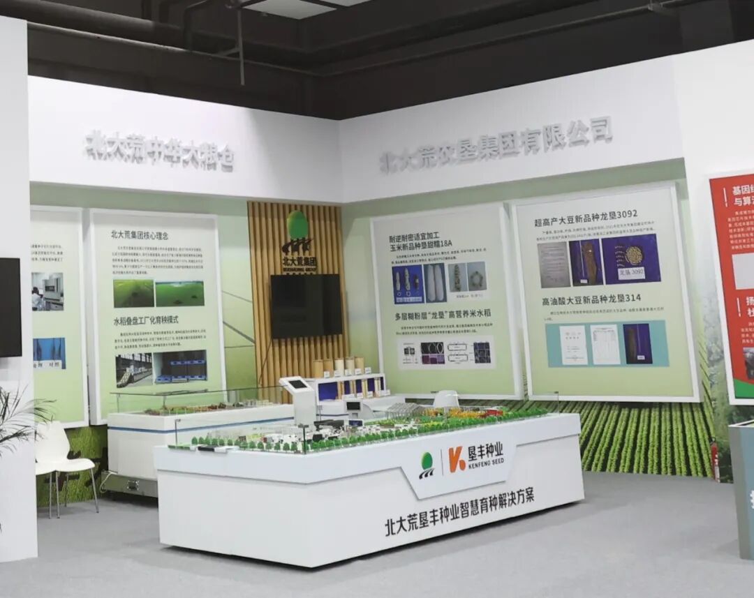 北大荒农垦集团有限公司展示了耐逆耐密适宜加工玉米新品种垦甜糯18A:白色甜糯玉米单交种,具有外观品质好、糯性优、甜度高、风味气味佳、耐逆、抗倒、商品穗率高、适宜加工等特点,每公顷可产6万穗商品穗;无腥味大豆新品种龙垦3079:基于无腥味相关基因开发分子标记选育而成的无腥味品种,在保证其他优良性状的同时,保留了无腥味性状,特别适合做无腥味豆粉、豆奶等豆制品;高油酸大豆新品种龙垦314:通过生物技术与常规育种相结合选育而成的大豆品种,富含人体必需脂肪酸—油酸,油酸含量是普通大豆的3-4倍;多层糊粉层“龙垦”高营养米水稻:由垦丰种业与中国科学院植物研究所开发选育。通过基因编辑技术将水稻品种的ta1基因定点突变,改良后的品种营养物质含量比普通全米提高3-5倍。